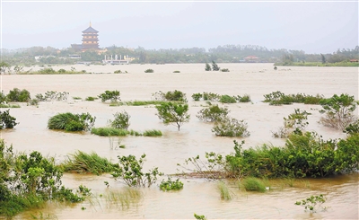 受今年第21号台风“莎莉嘉”的影响,琼海各地均出现不同程度的灾情。图为10月18日14:30,琼海市博鳌镇万泉河,部分基础设施和旅游景点遭到破坏。本报记者 陈元才 摄