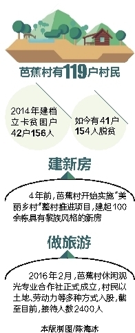 “我们尝试以‘合作社+贫困户+旅游产业项目’的扶贫模式,在芭蕉村发展乡村旅游,村民年底还有旅游收入分红。”邦溪镇党委书记李之雄介绍。