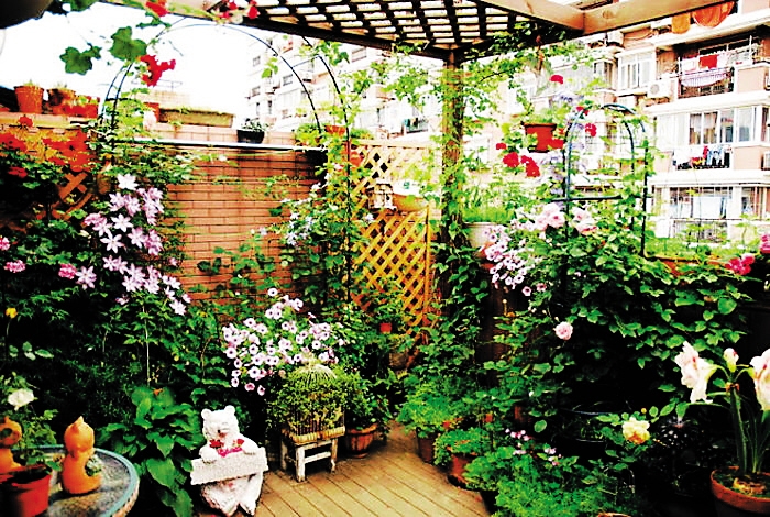 可以根据自己的喜好,打造成小花房,熙熙攘攘的植物和各式的工具摆在一起,随便搬个小凳子,侍弄着刚买回来的花花草草,在感叹时光飞逝的时候,也会庆幸自己能够有这样一个露台。