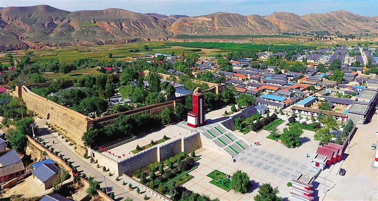 如今,在将台堡镇上,从任何一条街都能看见位于会师纪念馆22.5米高的会师纪念碑。江泽民题写的“中国工农红军长征将台堡会师纪念碑”16个大字,在阳光的照耀下熠熠生辉。