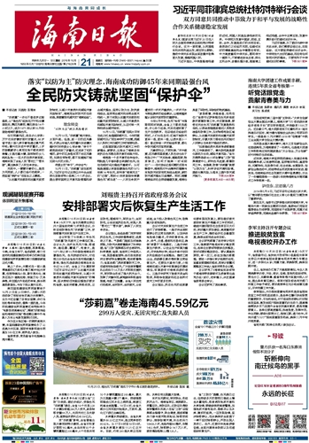 海南日报 头版 001 2016-10-211 2016年10月21日 星期五