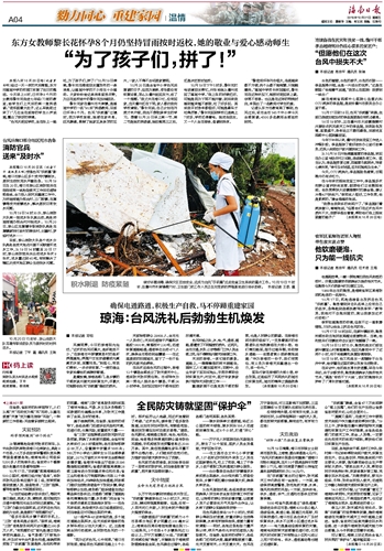 海南日报 勠力同心 重建家园·温情 004 2016-10-211 2016年10月21日 星期五