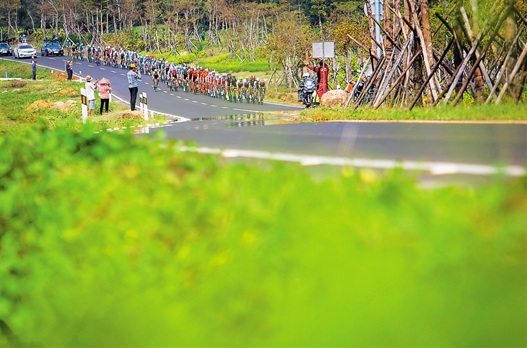 一行行五颜六色骑行服风行而过,一路风景甩在背后,欢呼人群群起群落……第十一届环海南岛国际公路自行车赛骑过万城,到达兴隆,这已经是该赛事第11年如期来到万宁。
