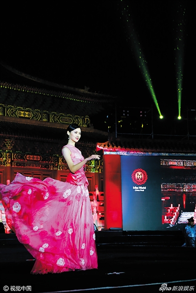 第66届世界小姐中国赛区总决赛日前在北京太庙落幕,40名选手在秋雨之中展开激烈角逐,最终,孔敬、陈思、邢嘉妮分别获得冠、亚、季军。图为冠军孔敬在比赛中。(钟新)