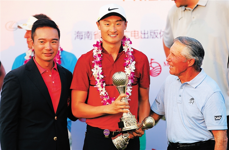 李昊桐当天的状态略有起伏,曾一度与美国老将毕姆陷入鏖战,但他仍然在后九洞把握住了机会,一连抓下4只小鸟。在第18号洞时,他稳稳地推进3码左右的小鸟推,全取3分,跃至榜首。随即握拳怒喊,彰显出冠军霸气。瑞典女神安娜·诺德奎斯特和美国球手里奇·毕姆以77杆的成绩并列居于第二位。