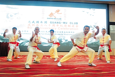 10月16日,这一天是光武国术团成立80周年的庆典,新加坡社会及家庭发展部长陈川仁出席并致辞称“光武国术团在保留和提升海南传统文化和传承海南武术上有着很大的贡献”。