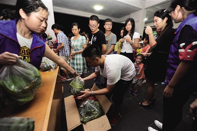 10月23日晚,海师校园里,热心的师生和市民排起长队。义卖的4000多斤香粉蕉运来后,大家抢着买。海师的蓝精灵志愿者们帮着收钱、装袋。
