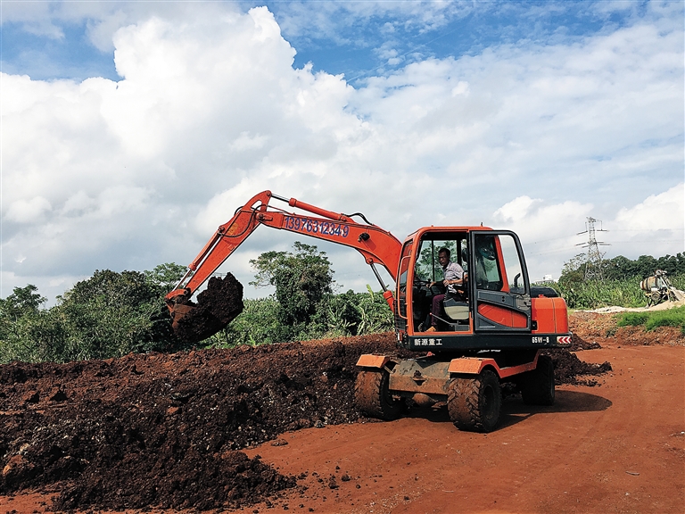 在施工现场,记者看到,一台挖掘机正在翻土,已经铺好的大片路基已再度被掘开,泥土摸上去仍湿湿的。福马公路代建指挥部总工程师冉海峰说,这300米的路段是17米的高填方施工,每铺一层土都要压实并检测合格后才能铺下一层,因为前段时间刮台风降雨量大,现在需将已压好的路基层再挖开晾晒,然后重新压实,才能保障施工质量。