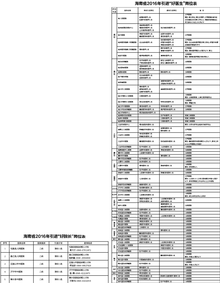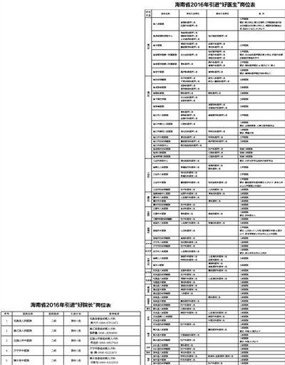2016年海南省计划面向全国引进“好院长”5名、“好医生”110名。 二、引进方式