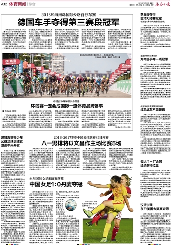 海南日报 体育新闻综合 012 2016-10-251 2016年10月25日 星期二