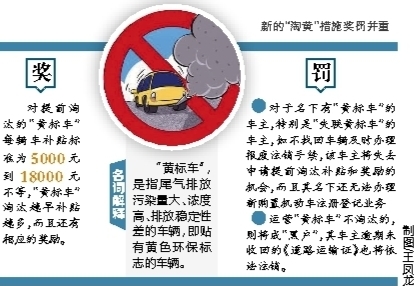 为此,我省已制定并出台关于加强“黄标车”管理的数项措施,以加速全省“淘黄”速度。计划今年11月1日起,对高污染排放机动车实行全省全区域全时段禁止通行,也就是说从11月1日起,我省对“黄标车”将采取全省全区域全时段禁止通行、严格机动车登记注册、实施机动车尾气遥感监测、强制注销等措施。