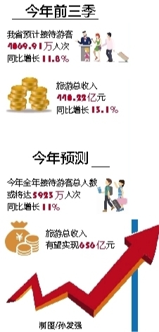 省旅游委预测:今年全年接待游客总人数或将达5923万人次,同比增长11%,旅游总收入有望实现656亿元,同比增长将接近一成半。