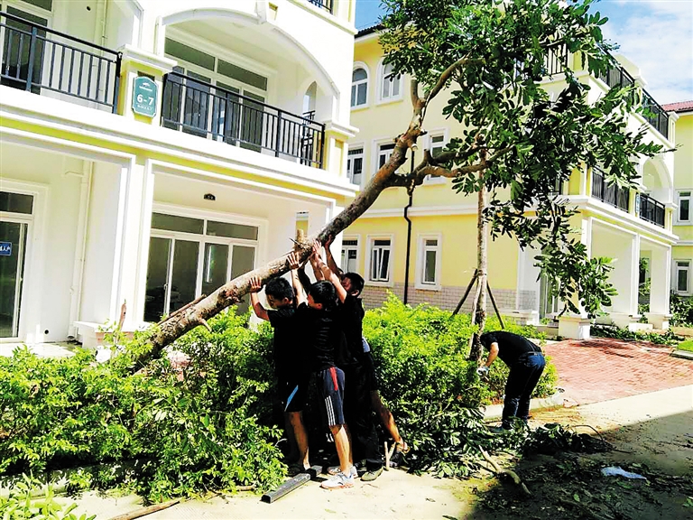 而在此次抗击“莎莉嘉”的过程中,鲁能也充分展现了作为央企的担当,迅速组成了一支由各部门业务骨干和管理人员组成的“党员突击队”,在面临台风过境的危急时刻守在一线值班、轮流盯岗;耐心地与业主、住户沟通,对其进行心理疏导和精神鼓励;更难得的是,还积极参与到项目周边区域的灾后重建工作中,自发地对周边倒塌的树木拉起重植;清理道路上的垃圾木屑;翻新因台风受损的植被;对项目周边海滩、海岸线开展垃圾清理工作等。