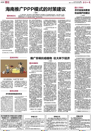 以抗癌防癌方剂研发为主,坚持“人无我有”的开发原则。海南热带珍稀野生抗癌植物的不可复制性,为提升产业“人无我有”的核心竞争力提供了诸多有利条件。依托优质基源,将研发抗癌防癌方剂作为优先发展战略,通过多学科、跨行业的科技协作与课题攻关,有望尽快获得一批具有自主知识产权的重要科技成果。