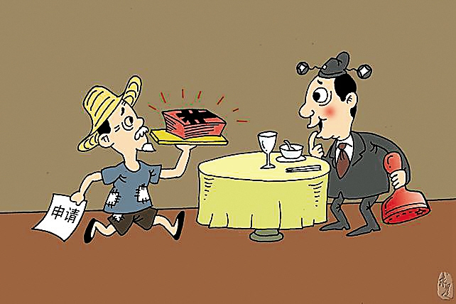申请计划生育家庭特别补助,增花村63岁的孤寡老人钟广福花了600多元请村、乡干部吃饭、买烟。“办事就要请干部吃饭”成了潜规则。这样的潜规则在不少地方不难见其踪影。“芝麻官”权力在乡镇一级似乎发挥得更为淋漓尽致。读解权力扭曲的背后,权力观念缺位、行为缺范、监督缺效的“三缺”格局跃入眼帘。当权力失控时,帮贫济困,难以起到名副其实的作用。促使权力归位,在“扶贫攻坚”的语境下,“去疴”的“良药”显得更为迫切。