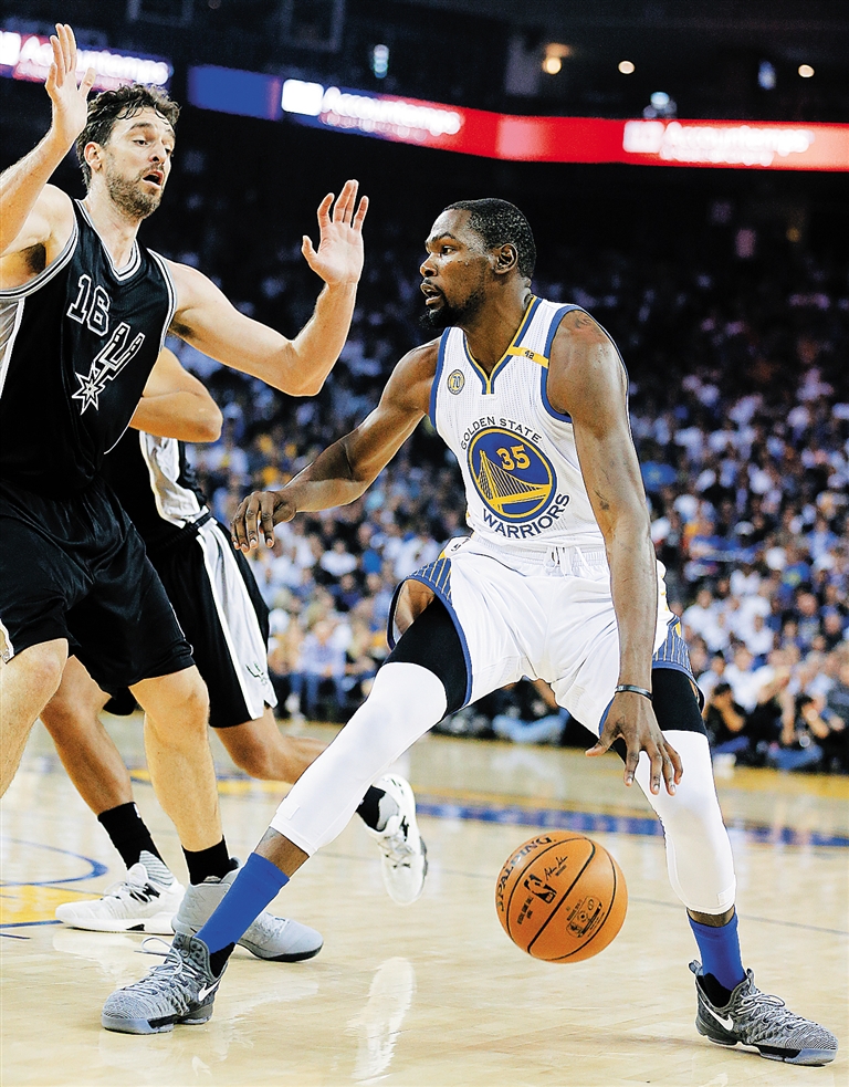在上赛季的总决赛中负于骑士队之后,勇士队招来了杜兰特组成令人生畏的“四巨头”。然而,“四巨头”一上来就在老牌劲旅马刺队面前栽了跟头。伦纳德射下创职业生涯新高的35分,率领马刺队给了勇士队当头一棒。