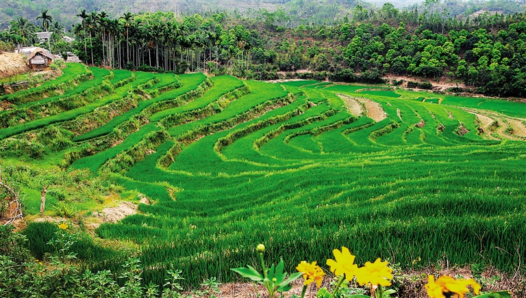 穿过狭窄的村道,远道而来的行者可以看见梯田在阳光下肆意地绿着,看到道路旁的溪涧、缓缓流过的清泉、鹦哥岭脚下的琼崖纵队司令部旧址和山谷里漂亮的露营地。