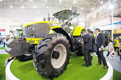 10月26日,参观者在参观中联重科公司生产的PL2304轮式拖拉机。