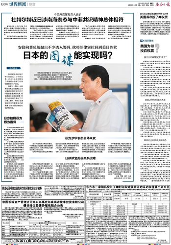 杜特尔特近日涉南海表态与中菲共识精神总体相符