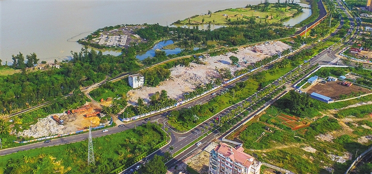 南渡江畔北冲村拆除 滨江带状公园连成片