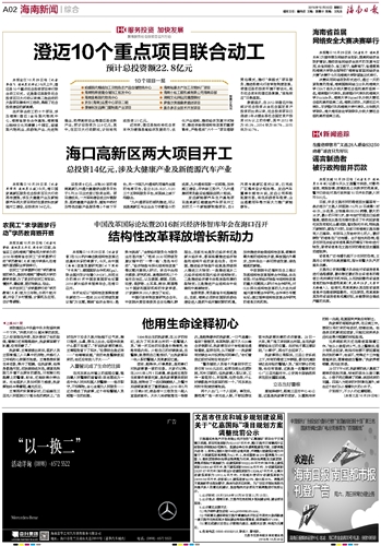 海南日报报业集团旗下媒体: 海南日报 | 南国都市报 | 南海网 | 南岛晚报 | 证券导报 | 法制时报 加入收藏 | 设为首页