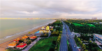 高空鸟瞰海口市西海岸新区,假日海滩一带美景尽收眼底。据了解,随着海秀快速路的开通,西海岸新区迎来发展进入加速期,未来这里将建设成为集行政服务、总部经济、文化会展、旅游度假、健康养生、休闲娱乐、理想居住七大功能元素为一体的海口新核心区。
