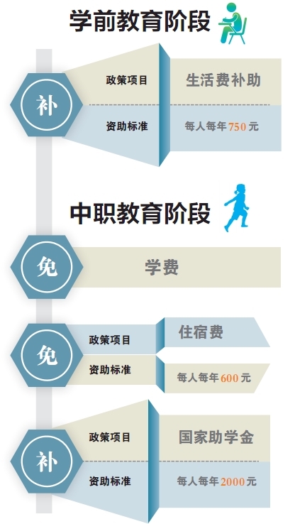 根据文件,最新出台的政策将为我省义务教育阶段建档立卡家庭经济困难学生提供更为全面的帮扶,实现义务教育政府托底资助——在伙食费补助方面,补助标准为小学每生每年2000元,初中每生每年2500元;在学习生活用品费补助方面,补助标准为每生每年400元,用于学生校服、学习资料及交通费等费用支出。