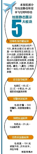 本届航展上,中航工业将通过多种展示方式与空军装备实物静展相配合,围绕“龙”系列、“鹰”系列、“影”系列、“兵”系列和无人直升机系列等五个系列,重点展示中航工业无人机研发成果。
