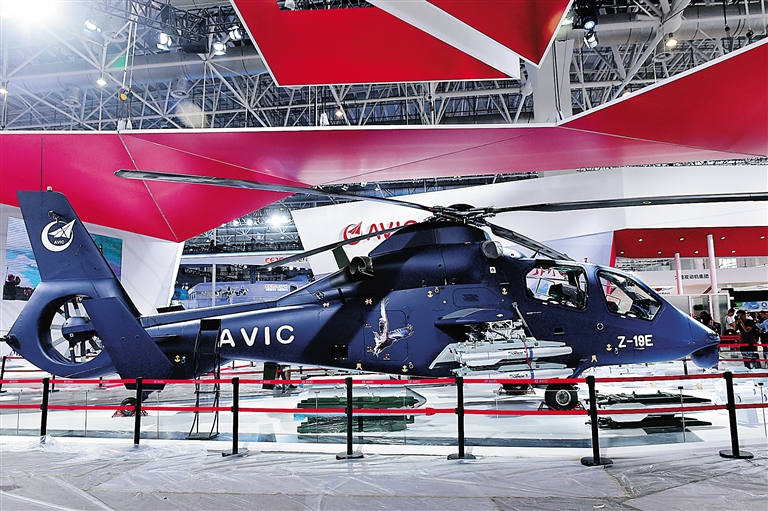 中航工业Z-19E武装直升机亮相。据悉,本次珠海航展在直升机方面将展出20项。其中横列式高速直升机、磁悬浮旋翼飞行器等将是首次参展。