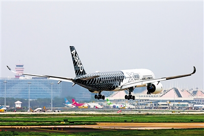 10月31日上午,这款飞机进行了飞行展示。据了解,这款目前世界上最先进的远程宽体飞机是首次造访海南。