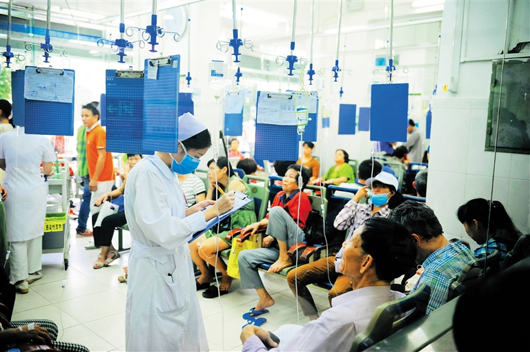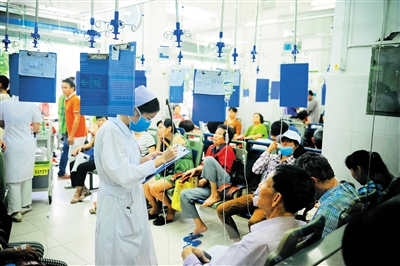 据了解,海口市内多家三甲医院日门诊输液量在200到300人次左右,天气变化高峰时会更多。