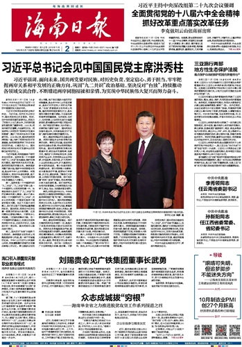 海南日报 头版 001 2016-11-021 2016年11月02日 星期三