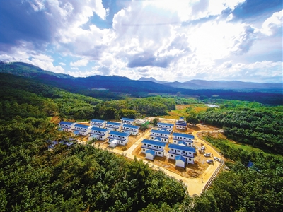 据了解,牙石铺村全村26户132人全部是苗族同胞。由于土地少、交通闭塞,村民生活条件十分艰苦,都是建档立卡贫困户。政府投资992万元对该村进行整村改造 。今后该村还将以“企业+贫困户”的方式发展屯昌香鸡养殖业,带动村民脱贫。 本报记者 袁琛 摄