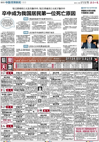 卒中成为我国居民第一位死亡原因