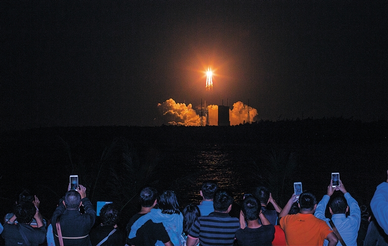 “箭”发文昌,“箭”驻娃心。我国新一代大火箭首飞也吸引了众多关注的目光。“我们特地组织观看火箭发射活动,下午发出通知后许多朋友报名参加,这是很好的科普机会。”三亚中科遥感信息产业园投资有限公司总经理裴国珉说。