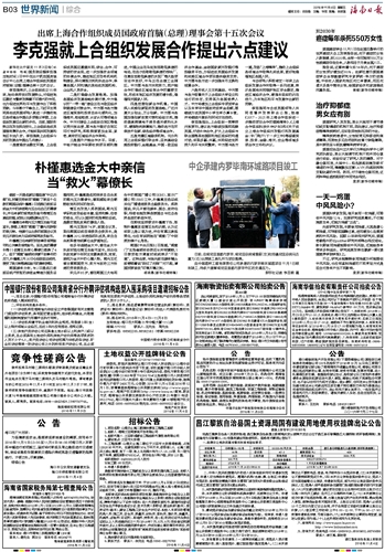 海南日报 世界新闻综合 015 2016-11-041 2016年11月04日 星期五