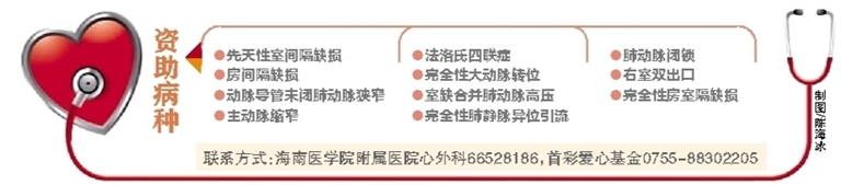 全省14周岁以下贫困儿童可联系海南医学院附属医院心外科或首彩爱心基金咨询相关事宜和进行预约检查。