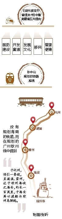 在这样一个框架中,孙中山注意到要调整海南的行政设置,这是令人惊讶的,因为在中国版图中海南只是一小块。调整海南的行政设置就是建省。建省有两个理由:一是提高防御能力,二是促进社会发展。总之是为了增加行政权力,提高行政效率。一个比较的例子就是,1884年中法战争时,法国舰队两次进攻台湾。战后,台湾升格为省。法国控制越南后,又于1899年租借广州湾。这种态势,直接威胁到广东的安全,而海南首当其冲。张之洞受任两广总督,特别注重海南的国防建设。海南儒生潘存还拟了海南改建行省的稿子,呈报给张之洞。张之洞及后来另一两广总督岑春煊都曾提议海南改建行省,但因和者寥寥,最后无果。