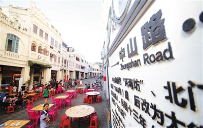 在海口市原老城区中部有一条东西走向的街道,东起博爱北路,西止新华北路,这就是中山路。该路原名为北门外路。1925年孙中山逝世后不久,海口地区民众为了纪念孙中山,将北门外路改名为中山路,全长近207米,宽为12米,道路两旁分布有众多骑楼式建筑的商铺。中山路是当时海口老城区最早的商街之一,现为海口骑楼老街建筑历史文化街区中的一条步行街。