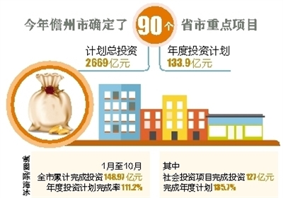 本报那大11月6日电 (记者易宗平 通讯员周鲁)儋州重点项目建设加速推进。统计显示:今年1月至10月,全市累计完成投资148.97亿元,年度投资计划完成率111.2%,高于序时进度27.9个百分点,同比增长94.6%。