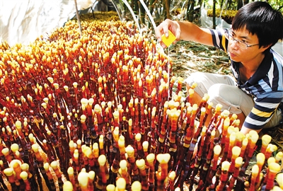 儋州牧春绿色生态农业开发有限公司技术员王永庆介绍,菌草鹿角灵芝栽培技术虽然比较复杂,但经过多年摸索,已经实现标准化生产。在栽培过程中,不需要施肥,也不需要浇水,但菌草鹿角灵芝对温度与湿度要求非常高。为此,公司对当地农民进行了系统的培训。