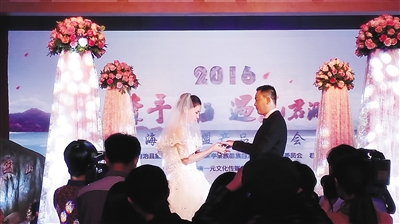 杭州市民王琴女士去年去过陵水旅游,得知推介会的消息后,拉上男友一起来到现场了解产品。“海边、教堂、原始森林、温泉,非常期待在那里举行一场轰轰烈烈的婚礼,已经定了就在明年元旦。”王琴一脸兴奋地说,而站在旁边的男友不住地点头表示赞同。