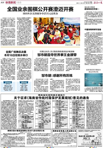 海南日报 体育新闻综合 011 2016-11-071 2016年11月07日 星期一