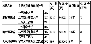 受委托,按现状分别公开招租保亭黎族苗族自治县三个创新复合型驿站,分别为新政镇驿站、响水镇驿站及大本旅游驿站。新政镇驿站位于G224国道海榆中线新政粮食储备库前面,响水镇驿站位于G244国道海榆中线响水镇检察院的左侧,大本旅游驿站位于响水镇大本村,海榆中线和陵保公路交叉口的东南侧。详见下表: