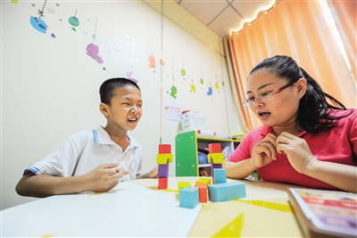另外,记者调查发现,随着这几年自闭症儿童的增多,加上省内其他市县的家长普遍愿意把残疾儿童送到海口就医就学,海口目前的公立和私立特殊教育学校已经人满为患。