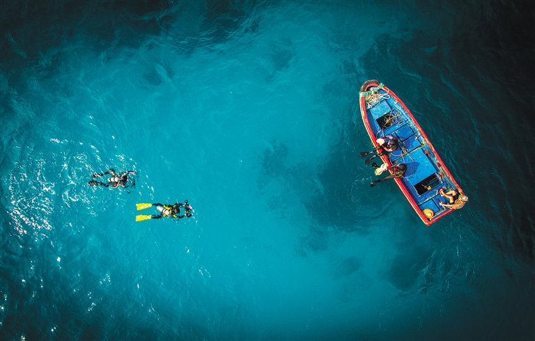 露出水面后,摄影师楠忘就吐掉了呼吸咬嘴,大声喊道,“这里太震撼了,太漂亮了!”