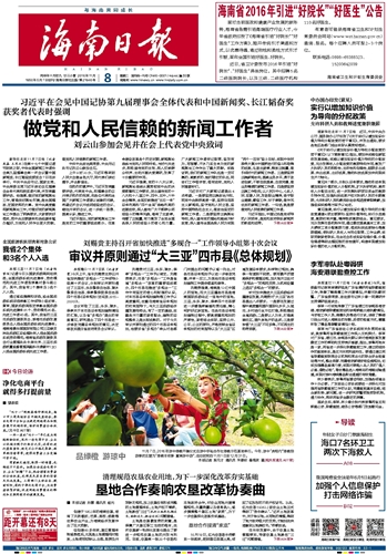 海南日报 头版 001 2016-11-081 2016年11月08日 星期二