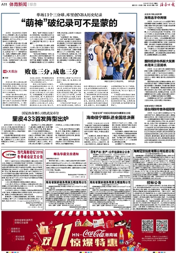 海南日报 体育新闻综合 011 2016-11-091 2016年11月09日 星期三