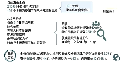 海南省委、省纪委言出纪随、挺纪在前,步步为营、严肃执纪,以强有力的举措确保我省换届工作的风清气正。目前海南全省3108个村(社区)党组织、197个乡镇的换届工作已全部顺利完成,19个市县换届