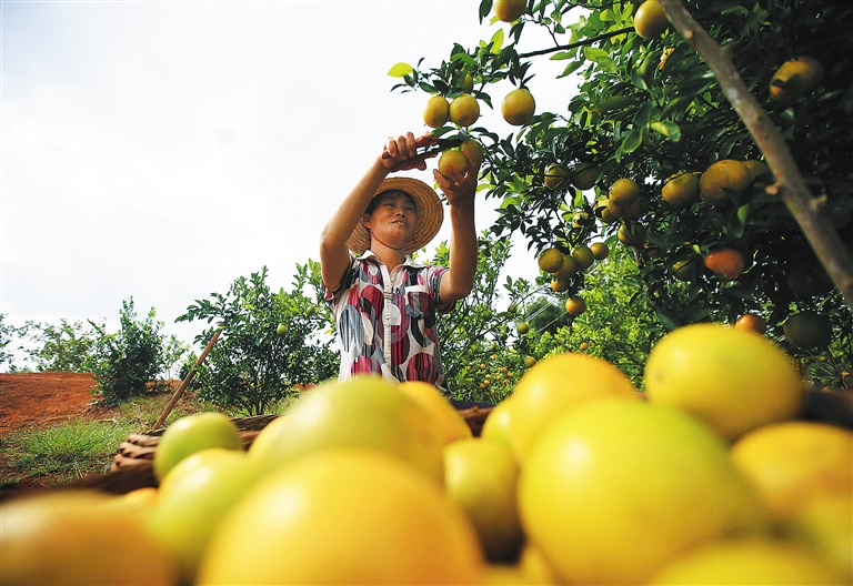 澄迈福橙是从广东引进的红江橙品种,经过多年的培育,逐步选育而成的,具有典型地方特色的热带橙类作物,其果实大,表色金黄、鲜亮,皮薄汁多、肉红可口、味清香蜜,是我省鲜果中可在春节前后上市且经济效益较高的橙类优良品种。